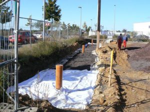 2 PK-Kompaktrigolen und eine Muldenrigolenanlage (Rückhaltevolumen insgesamt 185 m³)