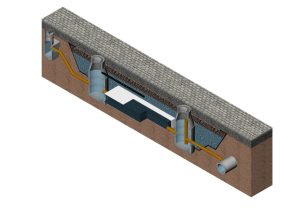 Der PK-Kompaktspeicher kann direkt unter den Verkehrsflächen eingebaut werden.
